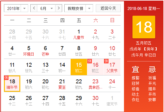 端午節(jié)要到了,根據(jù)國家統(tǒng)一放假安排:6月18日放假,與周末連休。