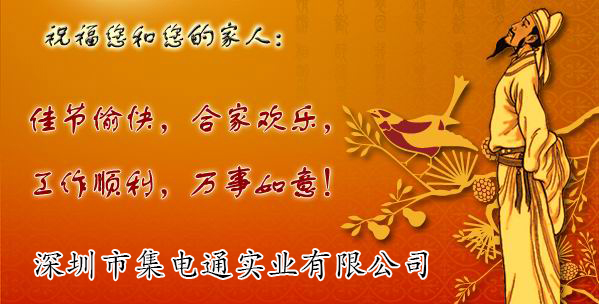 您們好!我們是深圳市集電通實業(yè)有限公司,感謝您在百忙之中抽空來看這封信,中秋將至,值此月圓佳節(jié)之際,我們公司全體員工祝您及您的家人闔家歡樂,萬事如意,同時也祝貴公司業(yè)績節(jié)節(jié)攀升,再創(chuàng)新高!