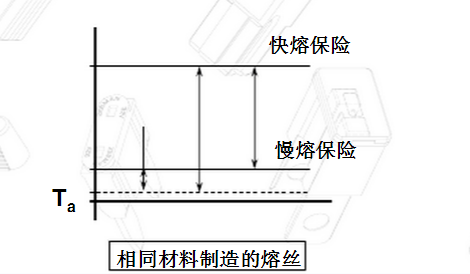 所以環(huán)境溫度對(duì)保險(xiǎn)絲額定值的影響我們可以通過下面的直觀圖和公式因子來(lái)理解,熔絲上的溫度環(huán)境Ta保險(xiǎn)絲溫度的上升Td。熔絲上的溫度=環(huán)境溫度Ta+保險(xiǎn)絲溫度的上升Td